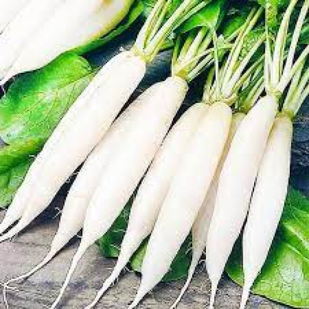Плоди подовжені, і більше схожі на моркву, ніж на редис. Відрізняється білою м'якоттю, ніжною і соковитою. Відноситься до сортів редису з середньо-гострим смаком без вираженої гіркоти.