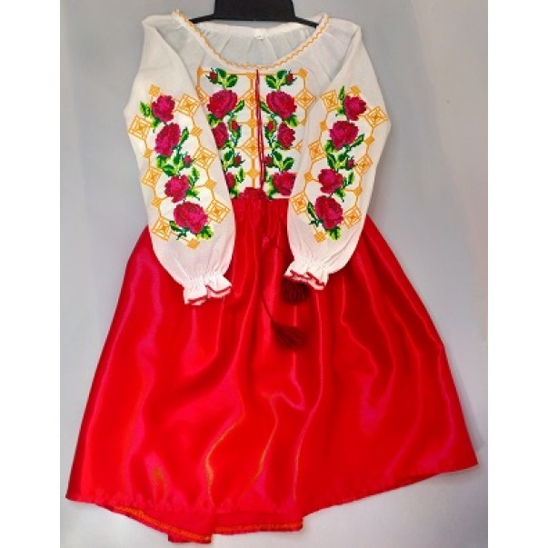 Сорочка вишита для дівчат 116 см "Роза" , домотканне полотно