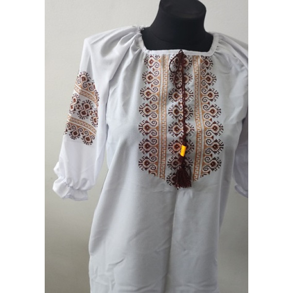 Сорочка вишита 44 р. орнамент коричневий, білий шифон, рукав 3/4